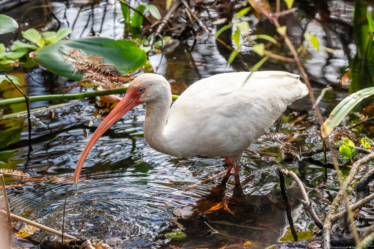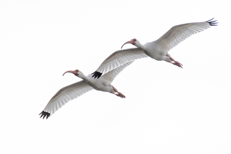 White Ibis are prolific in SW Florida. Here are two flying over on an overcast morning. The other is foraging in the swampy area of the Sanctuary. That long recurved beak is really something.
