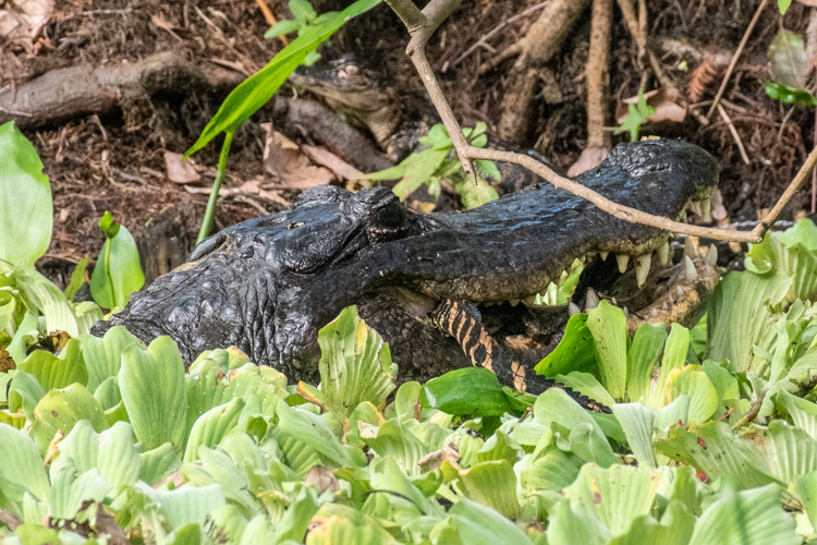 I can’t post photos from Florida without adding some of its famous reptile, the American Alligator. This is a juvenile peeking out from weeds and a mom gathering up her hatchlings. Her mouth has to be the safest place in the world for those little guys!