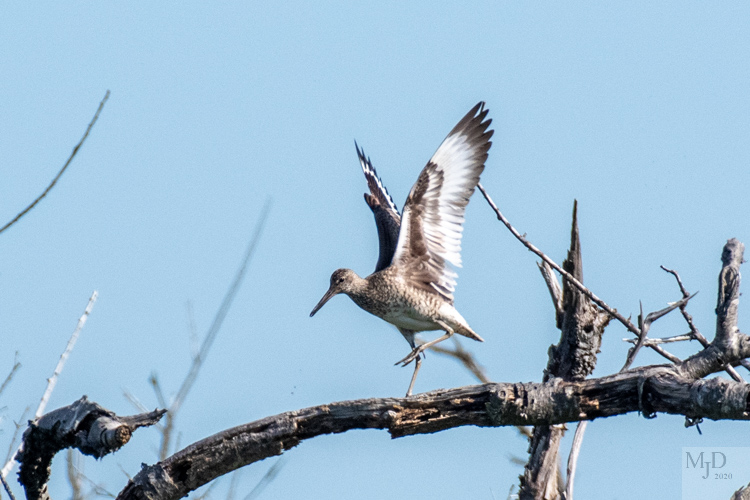 Willets look very different in flight. They blend in with the marsh where they nest but there is no mistaking them in flight!