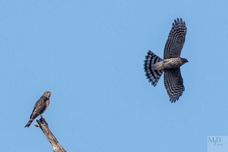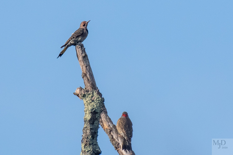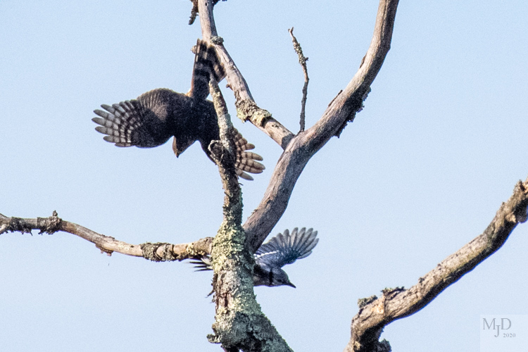 The antagonists seemed to tire of the back and forth by this time. The hawks moved on to another part of the marsh and left the tree to the woodpeckers and jays.