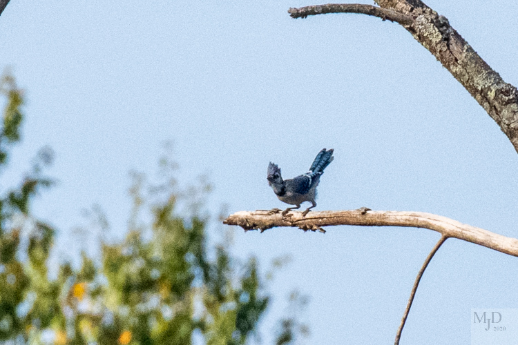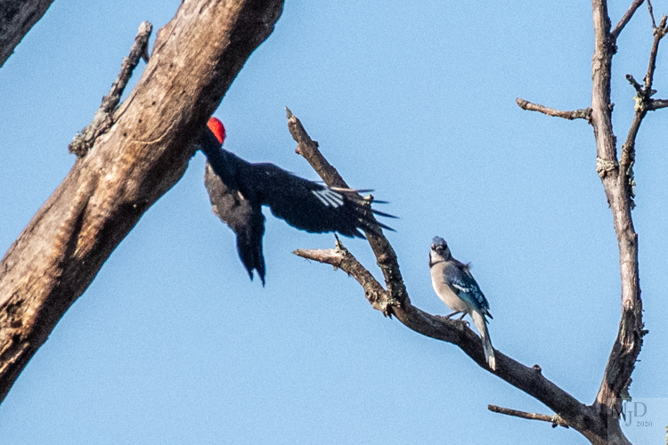 The Blue Jays were mostly noisy spectators up to this point. They now got into the action. Maybe this one was emboldened by the return of the woodpecker.