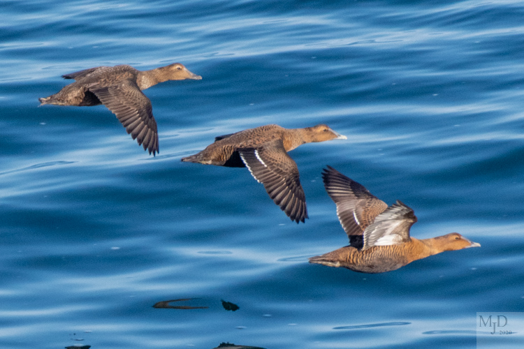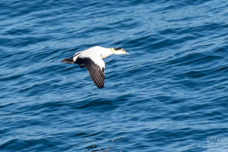 The most common ducks on the water and in the air were Black Scoters and Common Eiders. The Eiders are large ducks mostly known for the down collected from their nests. Mature males are white and black but the females have a nice chestnut color. Younger males are not as striking in their plumage.