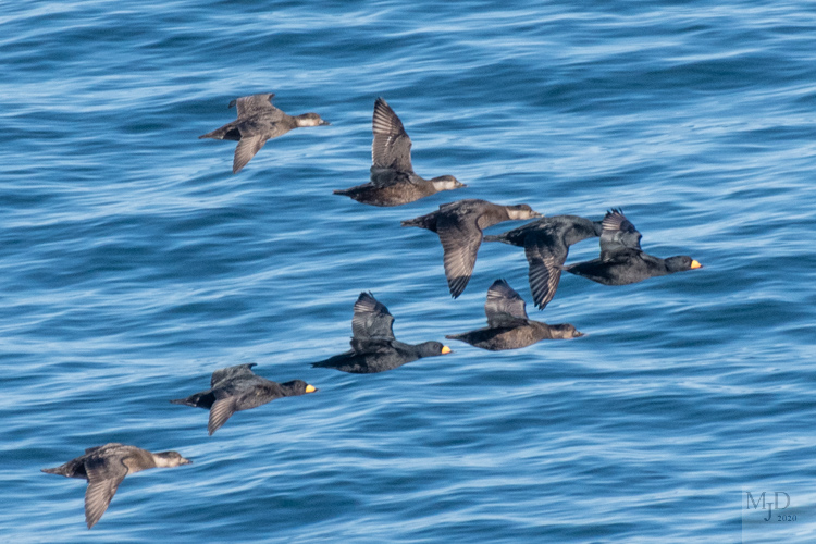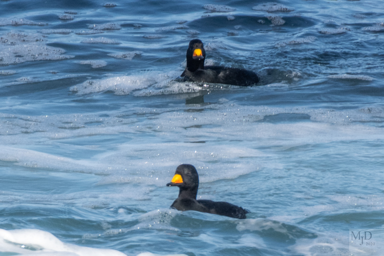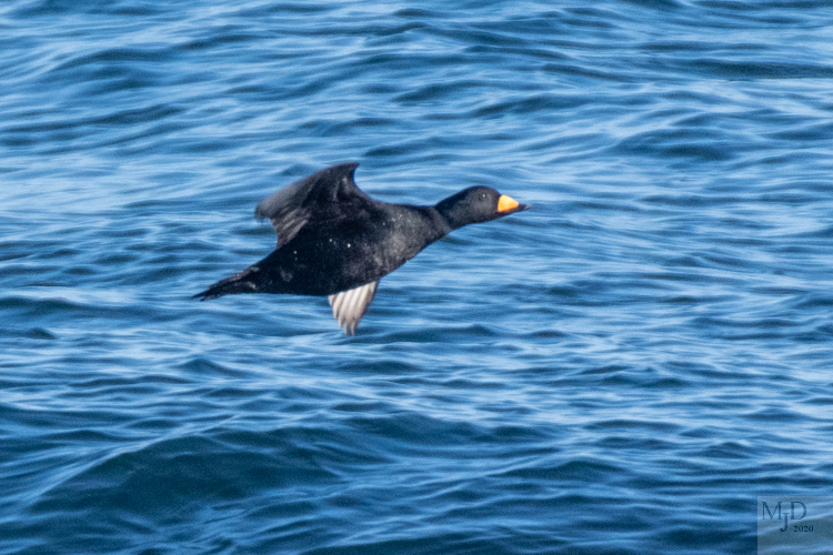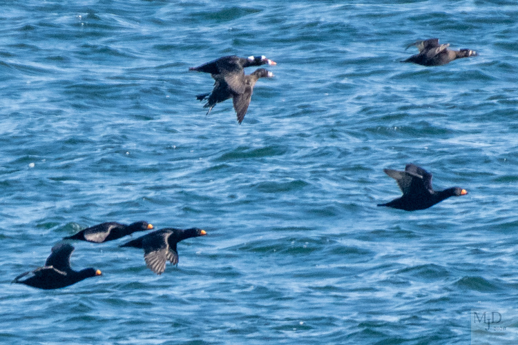 There are three types of Scoters: Black, White-winged and Surf Scoter. The Blacks were by far the most plentiful. The males have a bright orange bill that is easily spotted from a distance.