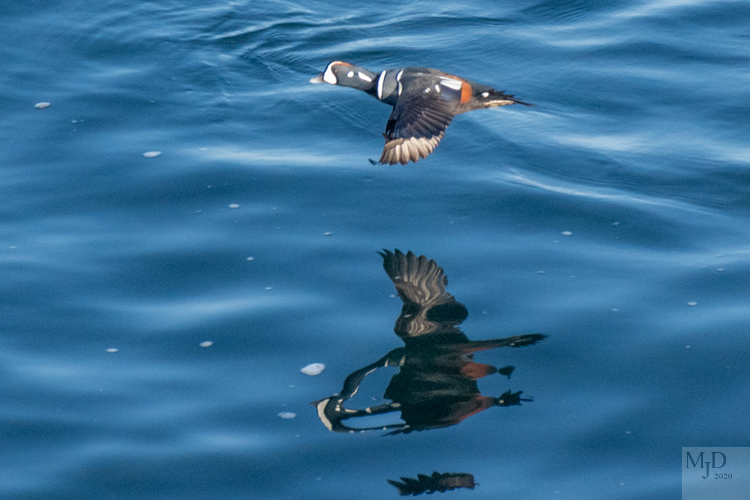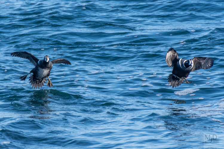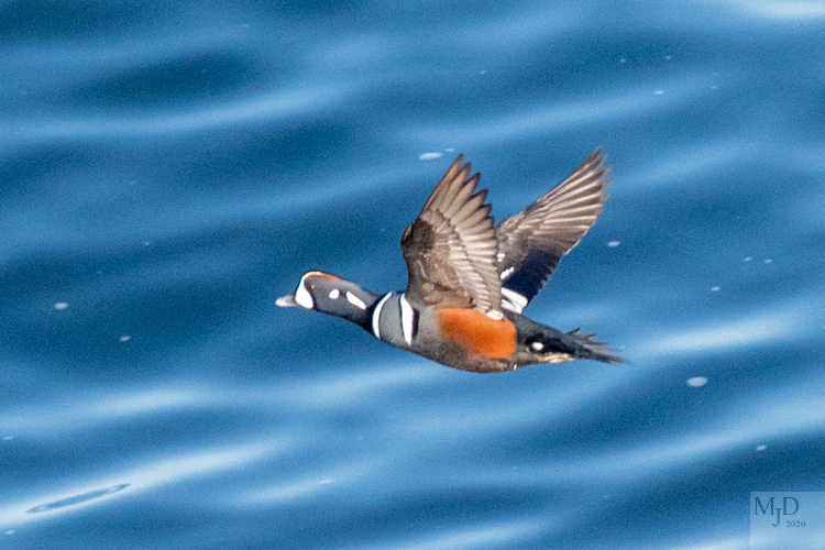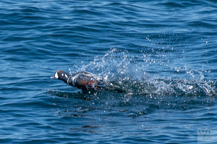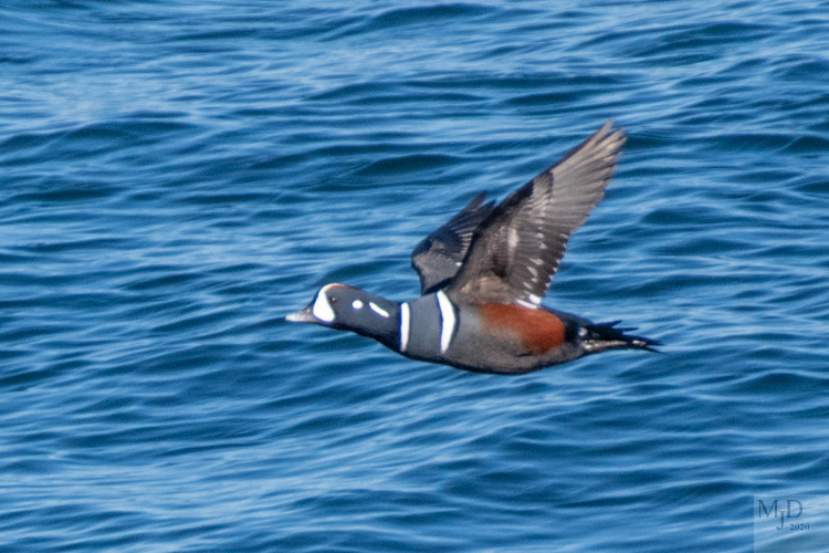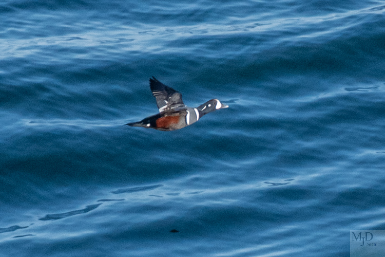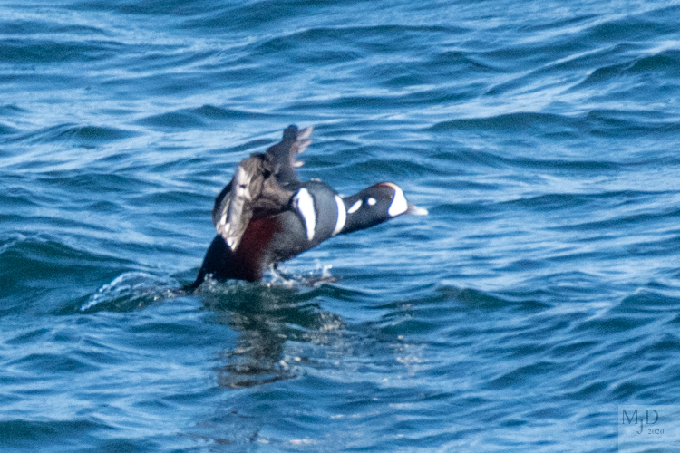 The Harlequin is that well-known medieval comic character attired in a brightly colored costume. There is a brightly colored duck named after the Harlequin that winters off the New England coast. And it is a favorite visitor for all duck fans. There were large numbers of Harlequin Ducks at Cape Ann, Massachusetts this week and I was able to get a lot of photos. These are some that I hope convey the striking appearance of these small ducks. They forage close to shore, diving in the surf as it breaks against the rocks. One wonders how they survive! But they do get close enough for photos.