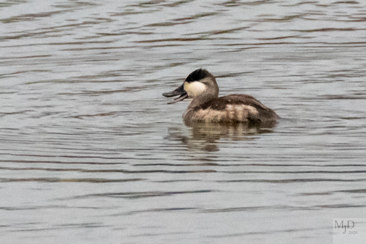 Also on inland water, a Belted Kingfisher. Its “hair” matches the damp, dark morning. Definitely was a bad hair day.
