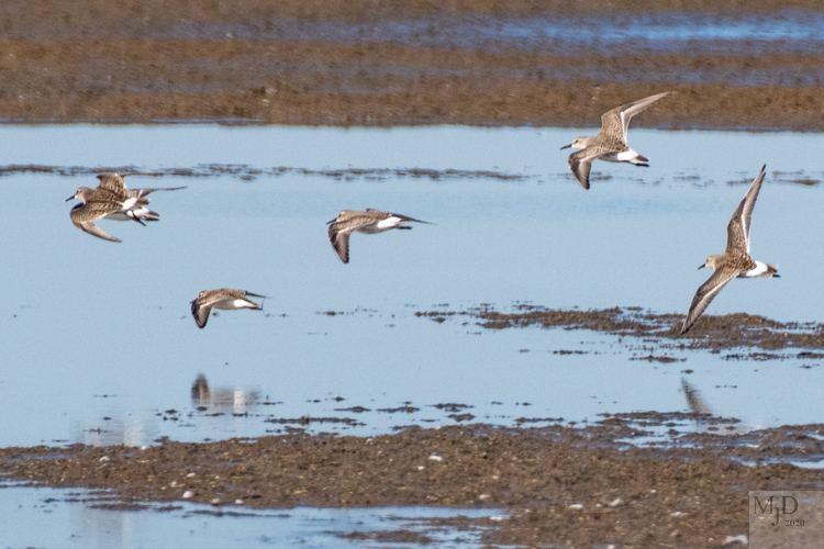 Moving from the inland areas to the shore. A few shorebirds stay along the coast all winter here but most migrate through as they head for the southern US, Caribbean or Central and South America. This Black-bellied Plover and these White-rumped Sandpipers are migrants who have lingered a bit. The Dunlin toughs it out with the rest of us New Englanders and stays for the winter.