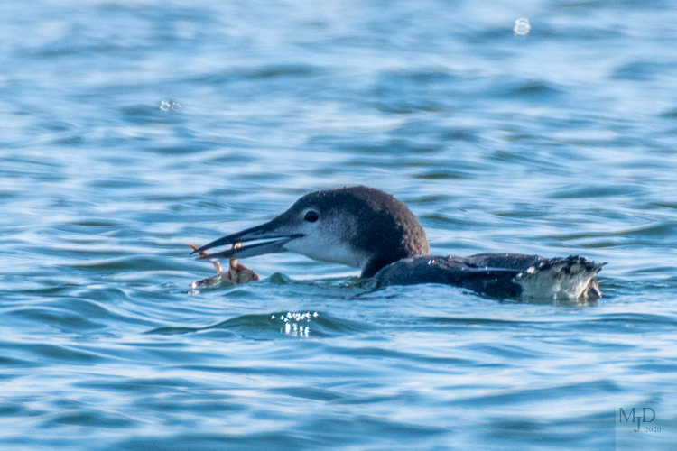 Diving ducks and loons spend the winter along our shores. Here is a Common Loon that has grabbed a small crab for breakfast.