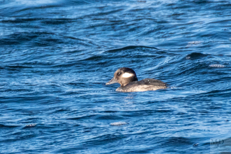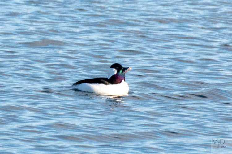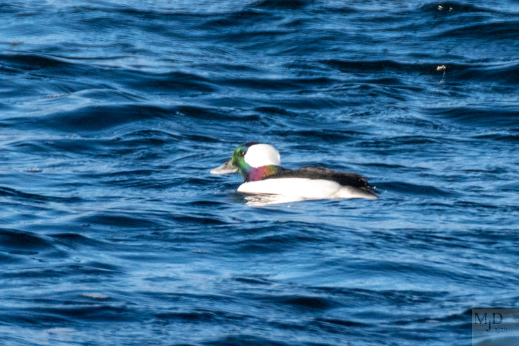 Bufflehead were everywhere from the shore to inland ponds. The iridescence of the male’s plumage was visible in the bright sun.