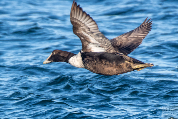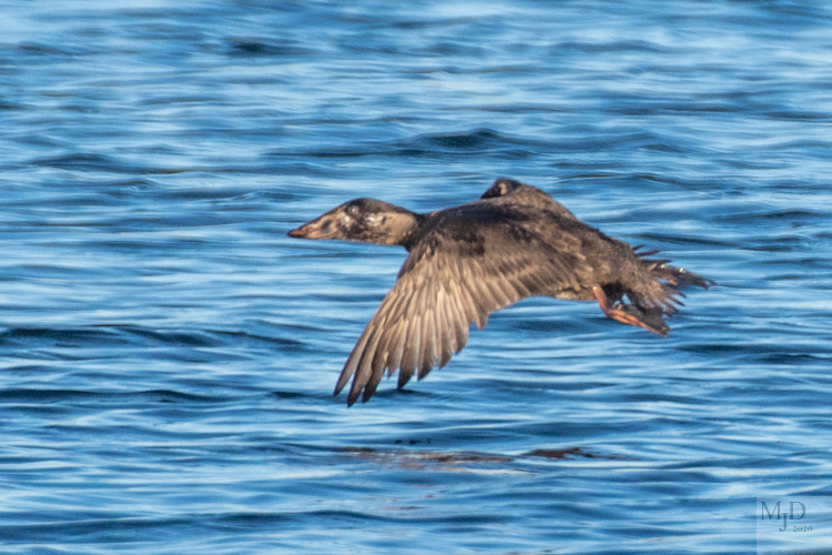 Immature male Surf Scoter on take-off run and airborne