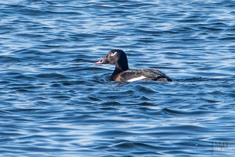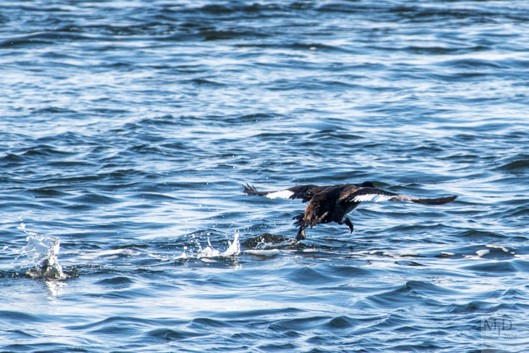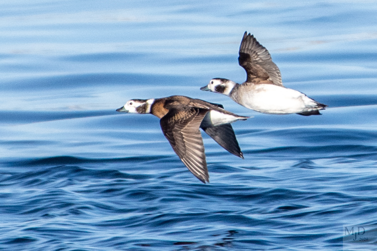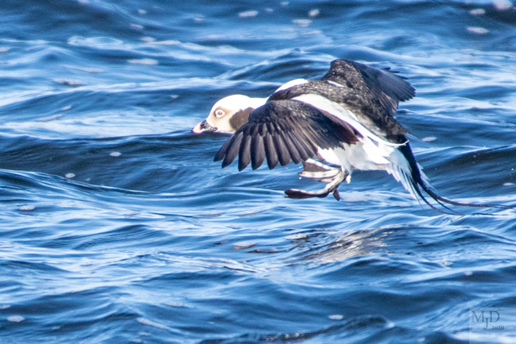 You will almost always catch sight of Long-tailed Ducks zipping up and down the river even if you only watch for five minutes. They fly fast and flap furiously.