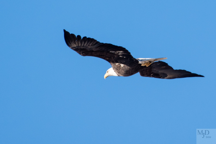 This Bald Eagle was a impressive sight as it flew over the river. “Impressed” isn’t what the ducks were feeling though.