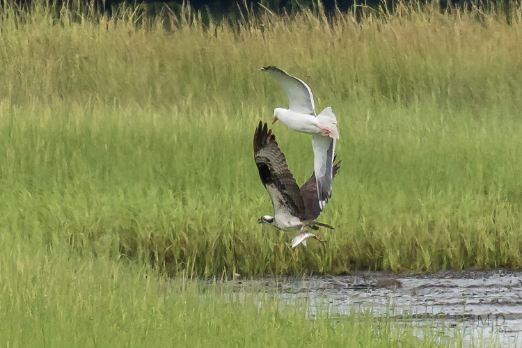 And this Great Black-backed Gull trying to steal a fish from an Osprey has to be Blackbeard! They are the largest gull in the world and rule the coast. The Osprey managed to keep his catch but holding on to the fish and fending off the large gull was tough.