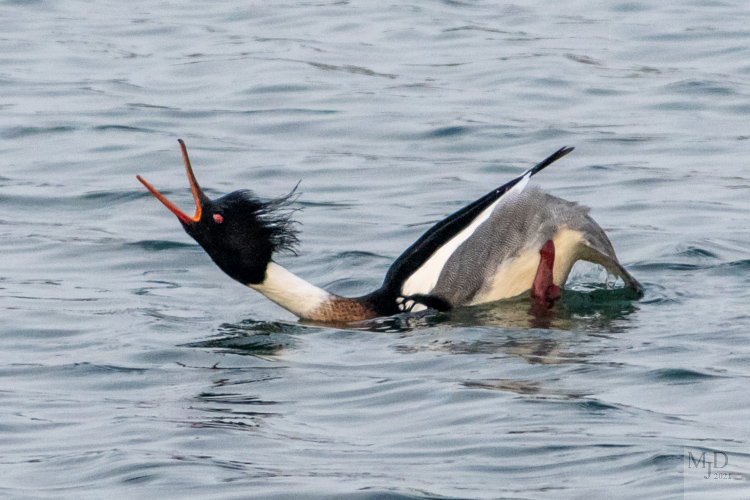 This was a morning filled with ducks. First up are Red-breasted Mergansers. The male is showing off his courting moves. I guess the females see something in it.