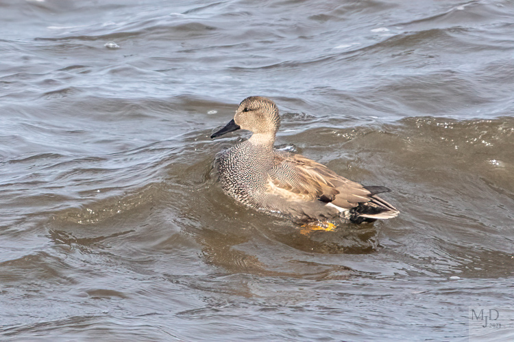 This Gadwall was navigating the waves in a inlet in the Gloucester harbor.