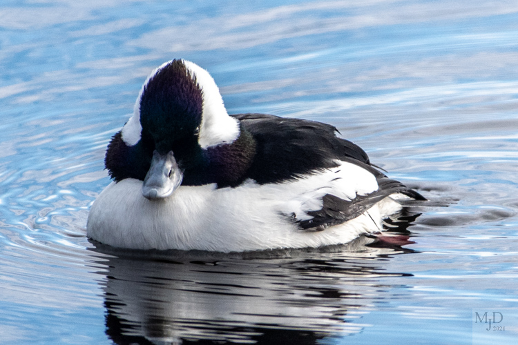 There was also a male Bufflehead swimming quietly near the shore of the pond. Most people consider this to be the cutest duck. They are only about half the size of a Mallard. And they are shaped like a rubber ducky.