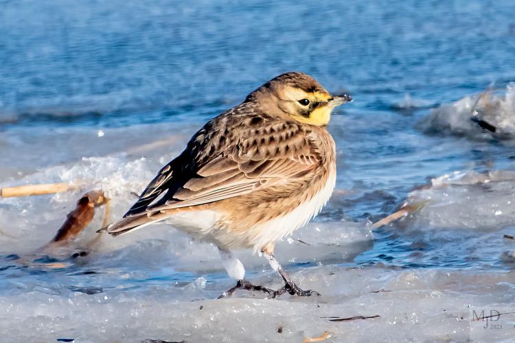 Another winter visitor was this Horned Lark that was on the ice at the edge of a creek.