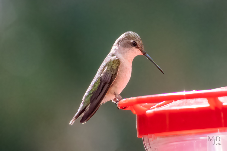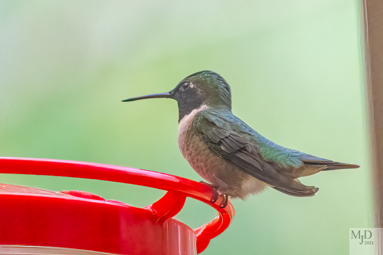 Warblers are slowly beginning to appear. There have been strong northwest winds in the past weeks and that may have slowed their arrival. But other migrants are showing up. I got my feeder out just a week before the first hummingbirds came to my home. Our summer resident hummingbird is the Ruby-throated Hummingbird. The males have a dark throat that is red in the right light. My first photo of the year didn’t catch this male in that right light so his throat looks black. Here’s a female and that male.