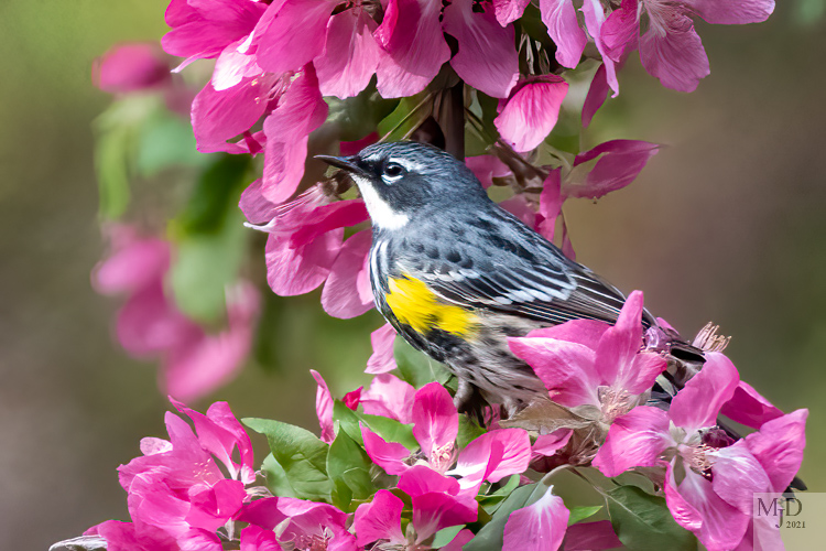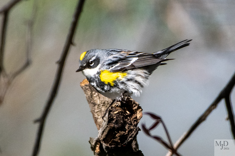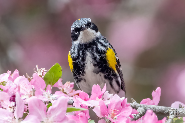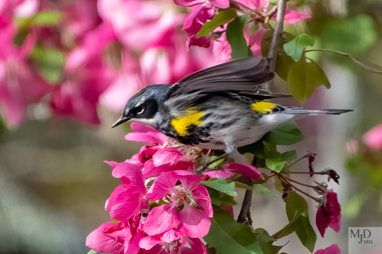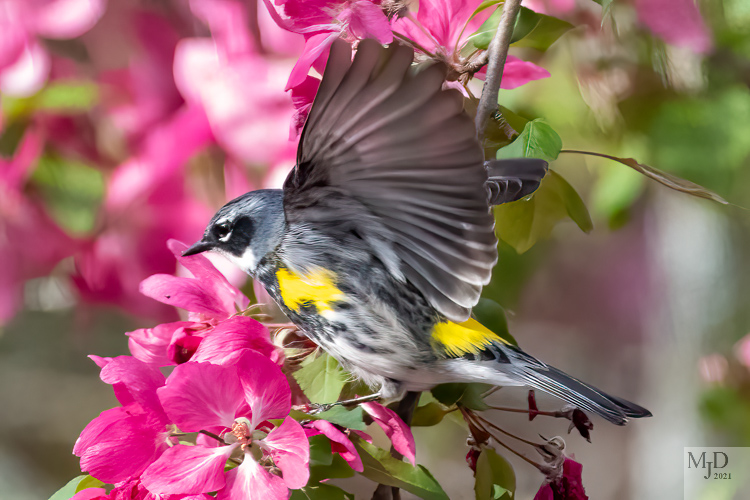 Yellow-rumped Warblers seem to be everywhere. They really like the flowering trees and flit all through them, grabbing insects from the flowers.