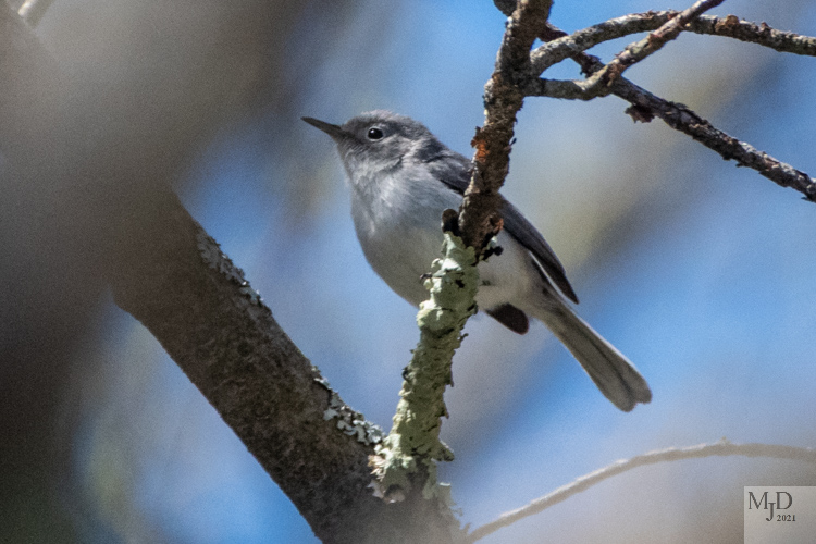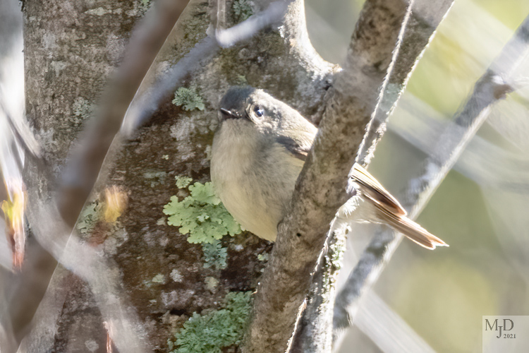 Blue-gray Gnatcatchers look a bit like Ruby-crowned Kinglets but have a longer tail and no wing bars. They forage through the trees in much same way as the Kinglet. The top two photos are the Gnatcatcher and the bottom two are the Kinglet for comparison.