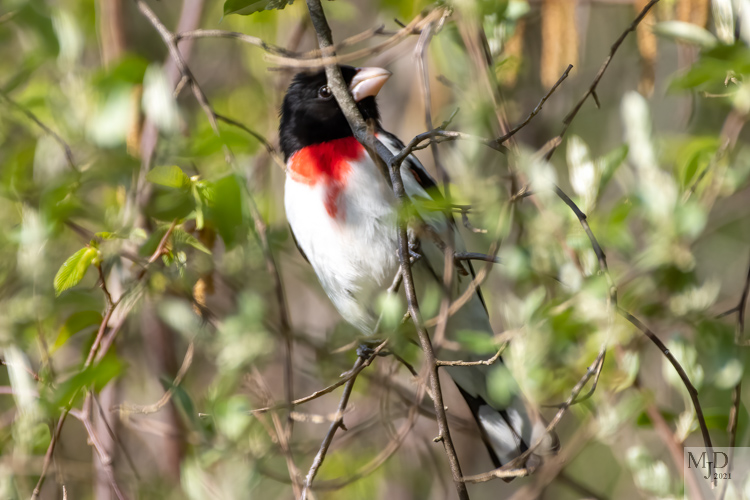 The male Rose-breasted Grosbeak is colorful but this one was a bit shy. The female wasn’t reluctant to show off her fine plumage though.