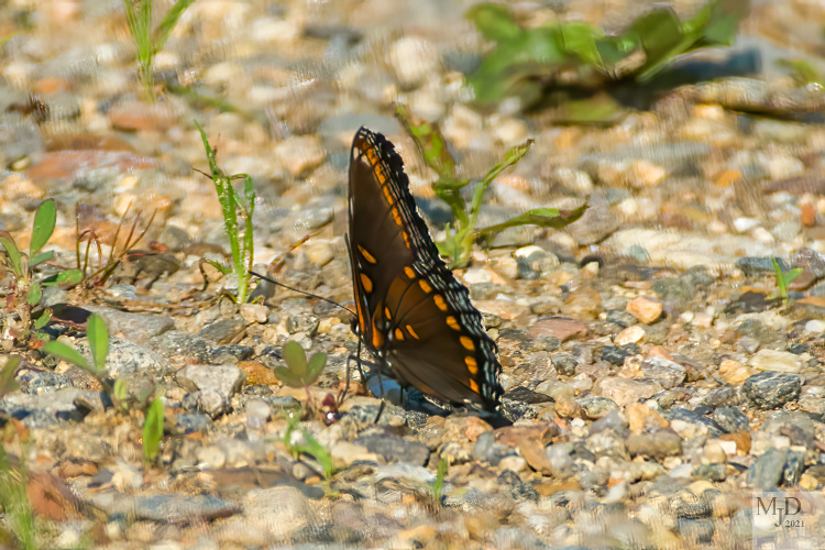 When the bird numbers go down, find some other winged creatures. This is a Red Admiral butterfly and a Yellow-sided Skimmer (dragonfly).