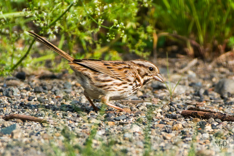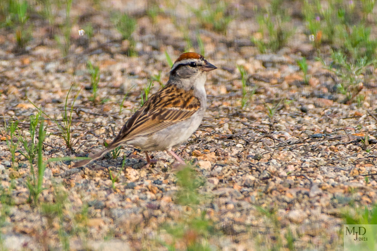 Some sparrows visit and some stay for the winter. The Song Sparrow (top) is here year round, while the Chipping Sparrow (bottom) migrates.