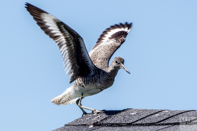 Willets are a large sandpiper that nest in the marshes. They sometimes perch on posts, buildings, signs or small trees unlike other sandpipers.