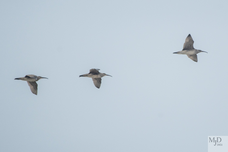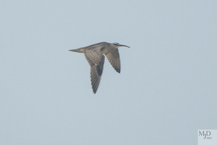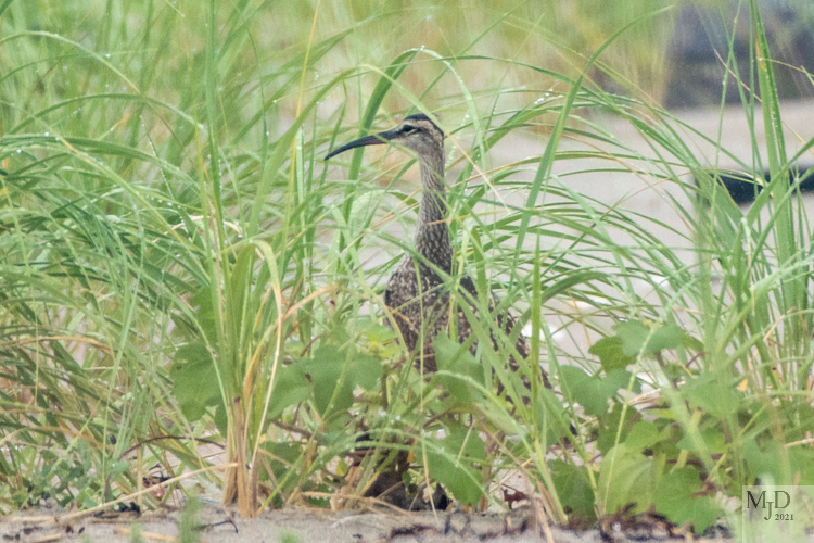 There were several hundred Semipalmated Plovers resting in the dunes and a constant flow of Tree Swallows coming across the sound and heading north along the island. But the first of two nice sightings was three Whimbrels. The beaks on these large shorebirds is unmistakable. They flew in, rested for a short time in the dunes and then flew off. They are migrating from the Arctic to the southern US and Central America.