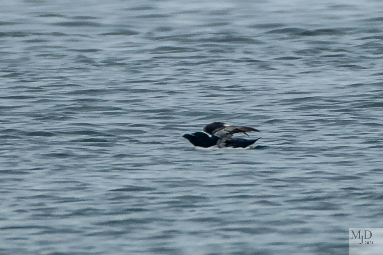 The best sighting of the morning was a Razorbill sitting on the water in the sound about 100-150 yards offshore. They are alcids and their most recognizable relative is the Puffin. They are typically only seen in our area in the winter and usually only after a storm pushes them close to shore. This isn’t the best picture but it came in handy when I reported our counts to eBird. Razorbills are rare this time of year and proof was needed for my report!