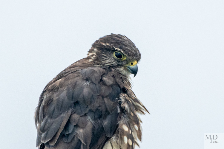 We left the beach and had not gone very far on the refuge road when we spotted a Merlin that was preening in a tree right next to the road. This small falcon is a mighty hunter for its size.