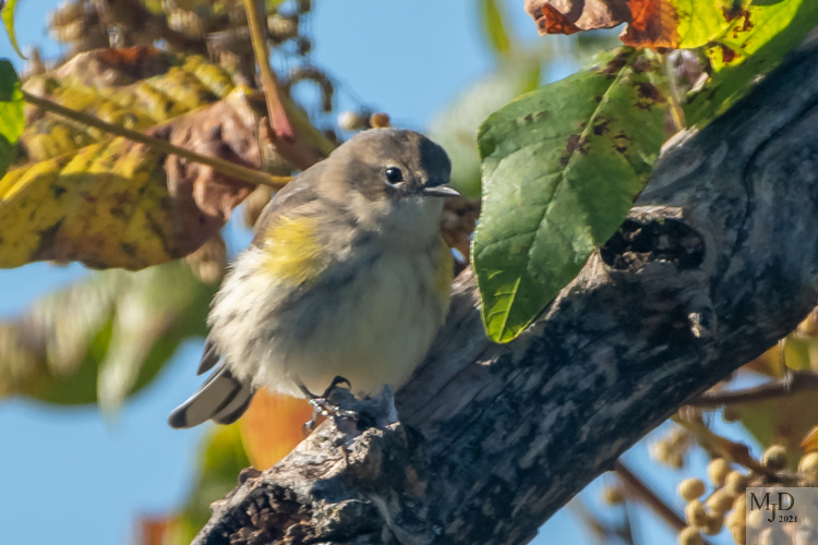 Some recent sightings include the Yellow-rumped Warbler. This warbler has been by far the most common warbler I have seen this fall. These pictures were taken in an old orchard that is now open space being preserved for walkers and wildlife.