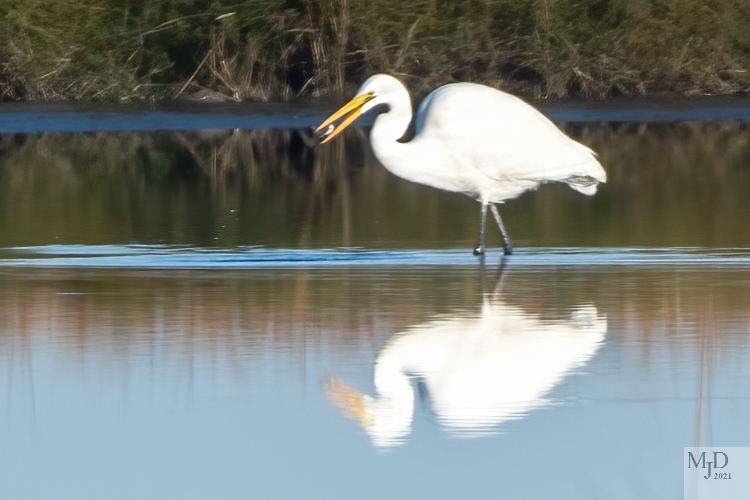 There are few, if any, Snowy Egrets left in our area. There are still a few Great Egrets though. This one just grabbed a small fish.