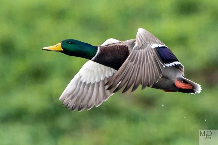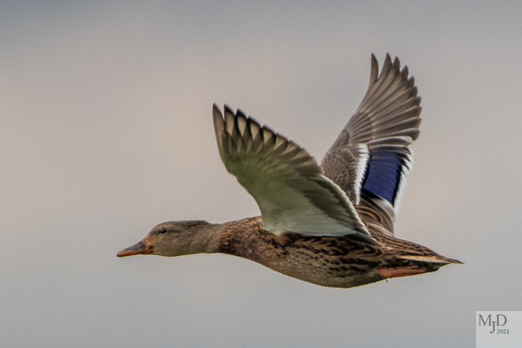 These are Mallards that flew close to us with the sun in a good position. The males are very distinctive but the females can be confused with other species, especially American Black Ducks. The blue speculum with white borders is the most visible mark to identify them.
