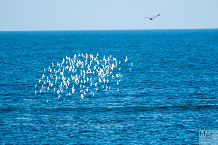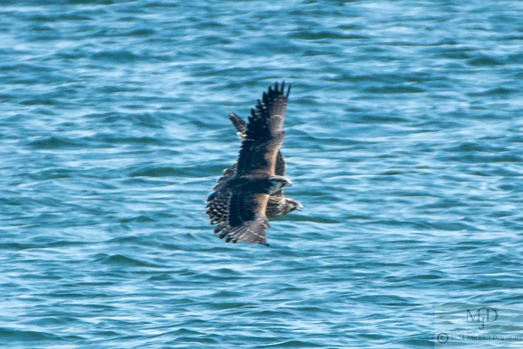 I noticed two birds interacting over the water just after I took these pictures. I had no idea what was going on, thinking it was probably a couple of gulls fighting over something. Although I couldn’t distinguish the birds on my camera’s display, we soon realized what they were…a pair of juvenile Peregrine Falcons.