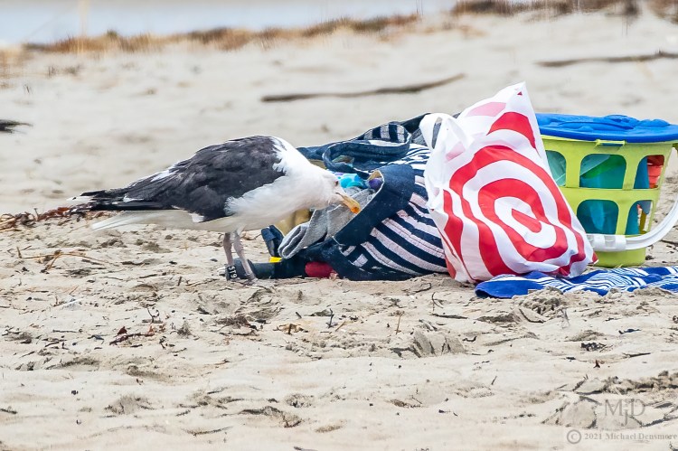 I can’t pass up an opportunity to include some pirates in my story. Anyone who has tried to have lunch on the beach can identify with these pictures of a young Herring Gull laying claim to someone’s lunch and a Great Black-backed Gull checking out the goodies.