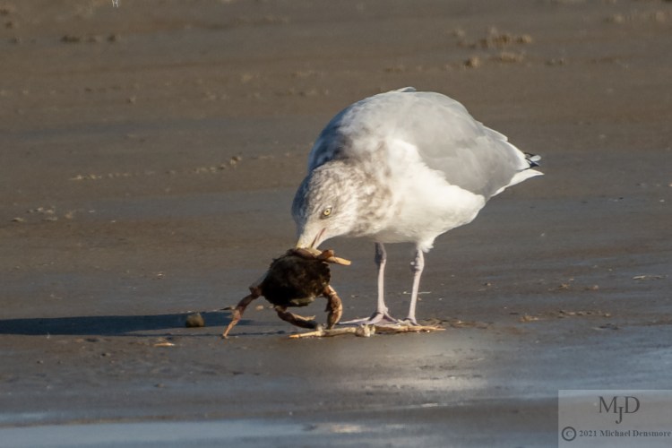 This Herring Gull may have come across the crab on its own or may have stolen it from someone else. You never can be sure with a pirate.