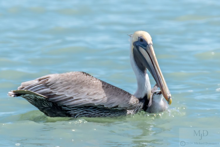 Here a Laughing Gull tries to snatch part of a Brown Pelican’s catch. Pirates are bold fellows.