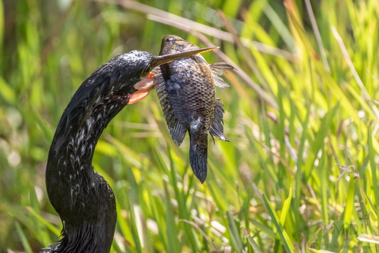 The Anhinga is another proficient fisherman. Unlike the Osprey, it swims after the fish rather than swooping down on the from the sky. The bird in the bottom photo had no problem getting that fish down.