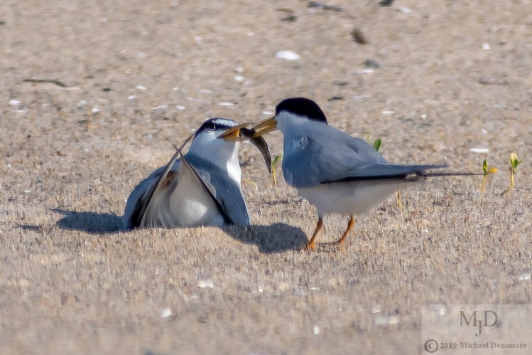 These are nesting Least Terns sharing a catch with their mate and chicks.