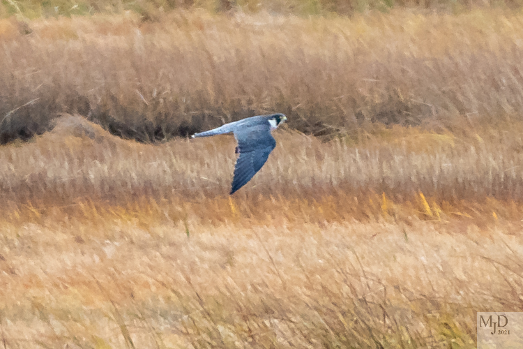 The Buntings need to be alert for this Peregrine Falcon flying over the marsh but don’t need to worry about the Northern Harrier hovering as she looks for mice.