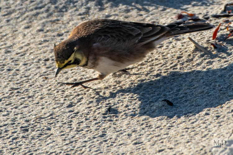 One of the birds we look for at this time of year is the Horned Lark. I photographed these in the dunes on the southern end of Plum Island. You can just make out the tufts of feathers that make the “horns” in the second picture.