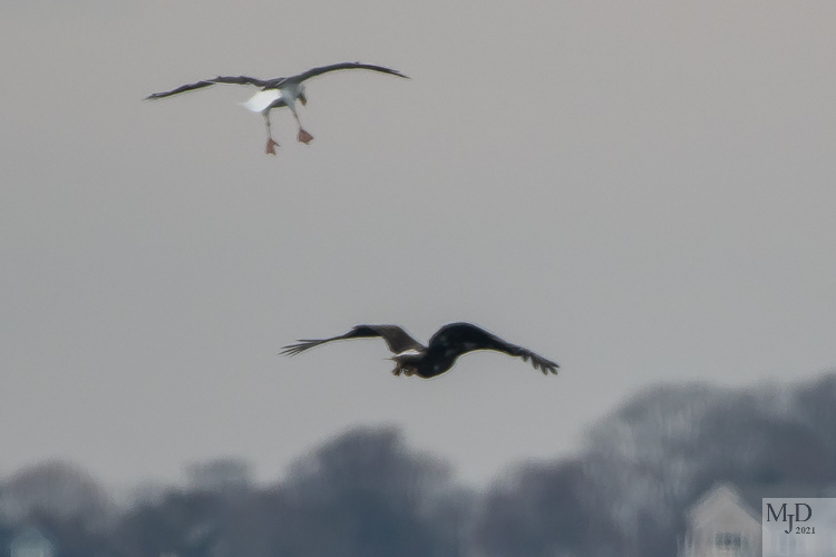 There has to be a pirate (Gull) story to end the year. We were observing ducks near the entrance to Gloucester harbor when several of them took to the air. I was able to get a quick photo of the Bald Eagle that flew over and caused a panic.