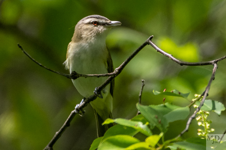 Red-eyed Vireos are constantly vocalizing. They are hard to spot as they move carefully through the canopy but you cannot miss their song. People use the mnemonic “Here I am! Where are you” to characterize it. I got a chance to photograph this one as it paused in an opening to sing.