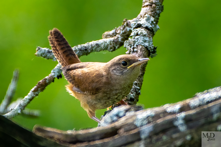 The description of the House Wren that accompanies a photo on the Cornell Lab site describes it as “nondescript brown bird with a short tail, thin bill, and dark barring on wings and tail”. Nondescript? I beg to differ. They definitely have a “look”. And they have an attitude to match that tail.