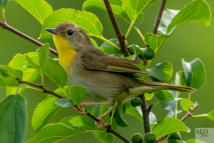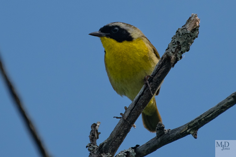 The Common Yellowthroat has been in several of my posts. It is a Warbler that breeds here and can be hard to spot sometimes since it tends to stay deep in the brush and foliage. It does pop up now and then though. I always think of Zorro when I see the male.
