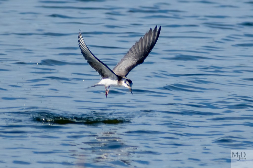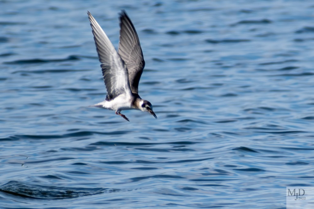 I am lucky to live along a major migratory route for birds who breed in Canada and the Arctic but winter in the southern US, Central America and South America. There are chances to see a great variety of birds as they pass through. Shorebirds and other coastal dwellers are the primary migrants at this time. One recent migrant sighting was of Black Terns. They nest in Canada and winter on the northern coasts of South America. We see juveniles and adults who have lost their breeding plumage but they are easy to pick out among our usual summer resident Terns as they are much darker in color. There were two of them diving for fish at a large pool on Plum Island. I was working with a set of gear that I only use occasionally but still managed to capture some of the action. I swapped my usual 150-450mm zoom for a 560mm prime lens. It’s a very long lens so I was using a tripod with a gimbal, also something out of the ordinary for me. But I was happy to get some practice with this setup and the Terns really gave me that!