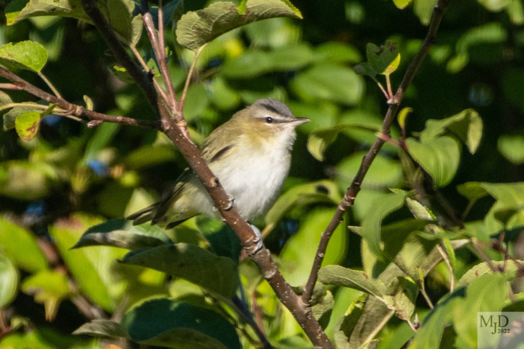This is a Red-eyed Vireo. But it has brown eyes since it is a juvenile and only the adults have the red eye color. This long range migrant needs to fuel up for a really long trip to the Amazon Basin in South America. That’s a lot of flying!