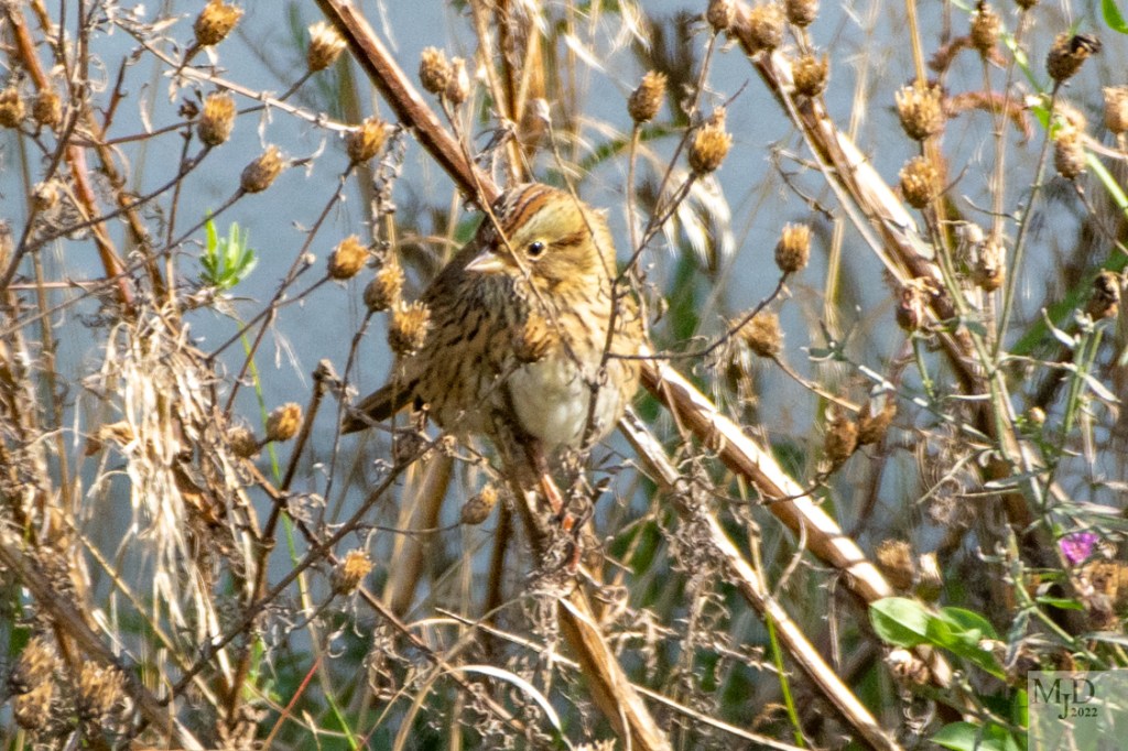 Another sparrow we spotted was a Lincoln’s Sparrow that was moving through our area on its way from Canada to Mexico. The buffy chest and face and crisp stripes are identifying marks.