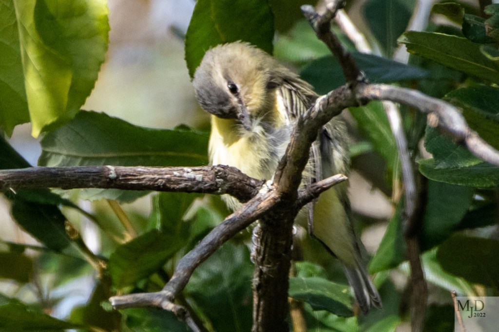 Another birdwatcher flagged us down to point out a Philadelphia Vireo. This is not a common migrant and many in our group, including me, had not seen one before. This one perched and preened for several minutes and gave us a very good look at it.