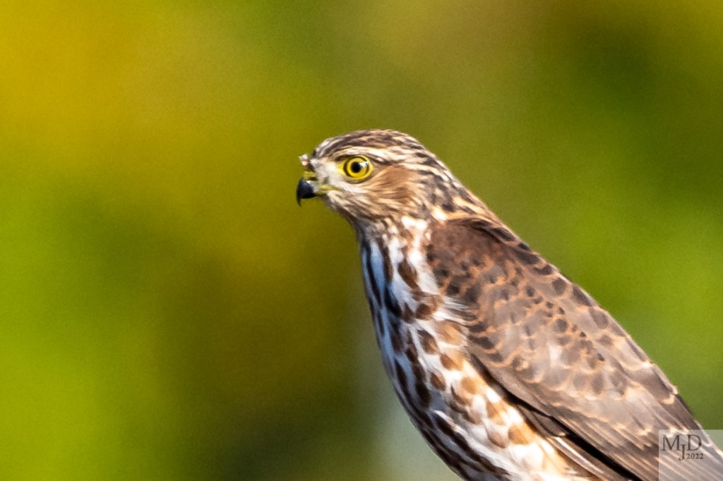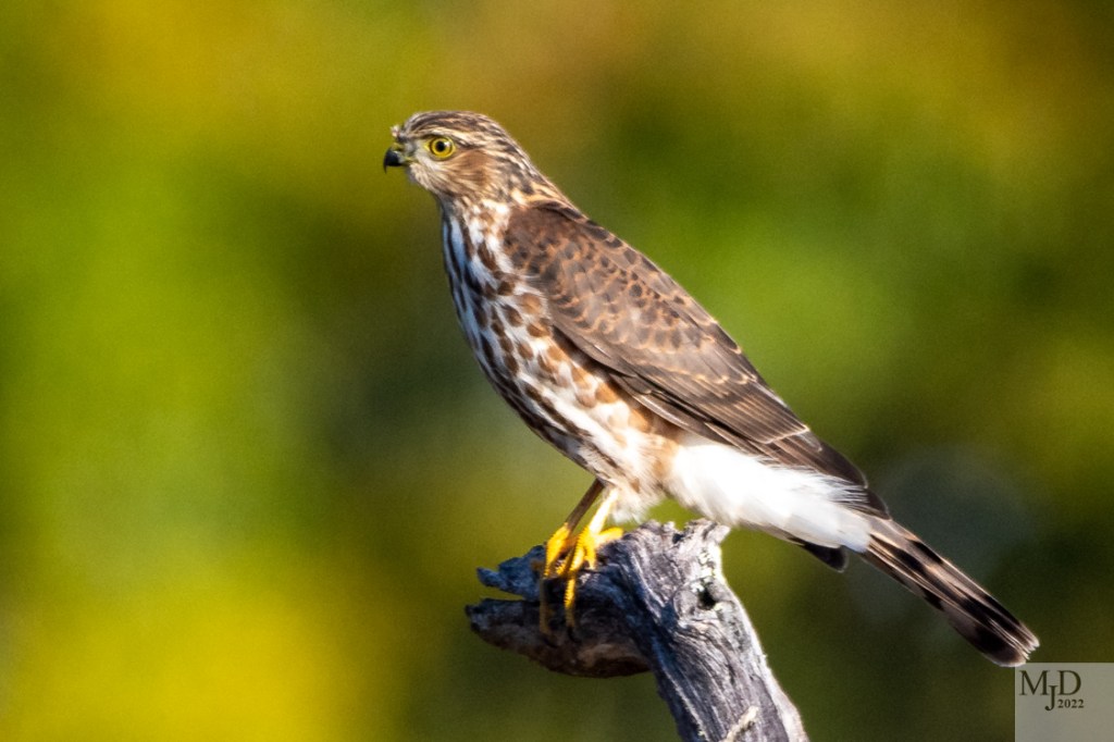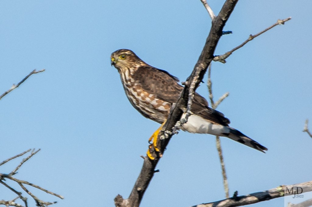 I had some close up looks at these two birds while out for walk. Several Blue Jays took exception to the presence of the hawk and were harassing it. When I first saw the hawk it was perched on a low stump.